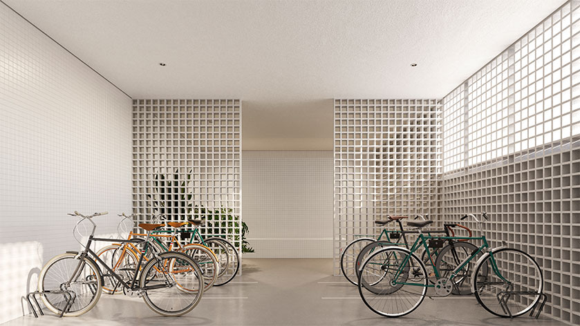 A permeabilidade é outro ponto que reforça os conceitos de bairro. Partindo da premissa de trazer vitalidade para o interior da quadra, o térreo do Tempo interage tanto com a Rua Compartilhada quanto com seu próprio interior. As lojas e a entrada do edifício são dispostas transversalmente neste pavimento, criando um percurso fluido. A vegetação desempenha um papel fundamental, buscando estabelecer uma relação com o parque adjacente.