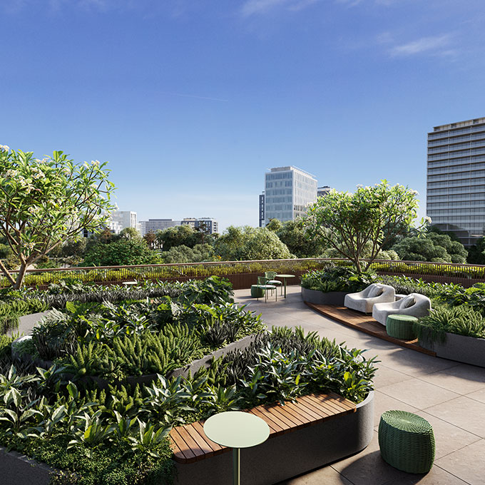 No 5º pavimento, outro marco do edifício é colocado, conectando os pavimentos corporativo e comercial. Este pavimento abriga todas as instalações de apoio ao usuário e um amplo terraço aberto, potencializando a interação social.