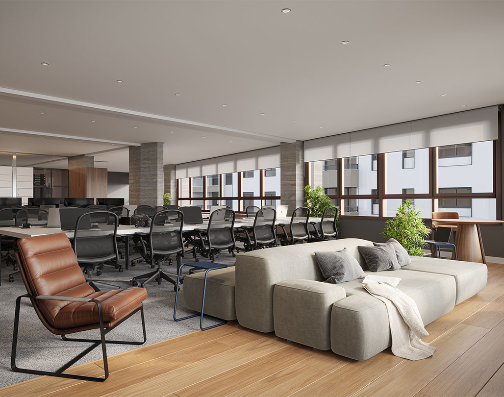 O lugar certo, na hora certa. No Tempo, o senso de comunidade é potencializado, incentivando a troca e a convivência. Este projeto representa o futuro do trabalho, do networking e da vida urbana. Por meio da arquitetura, conectamos indivíduos e trabalho — nosso cotidiano acontece com leveza e fluidez.