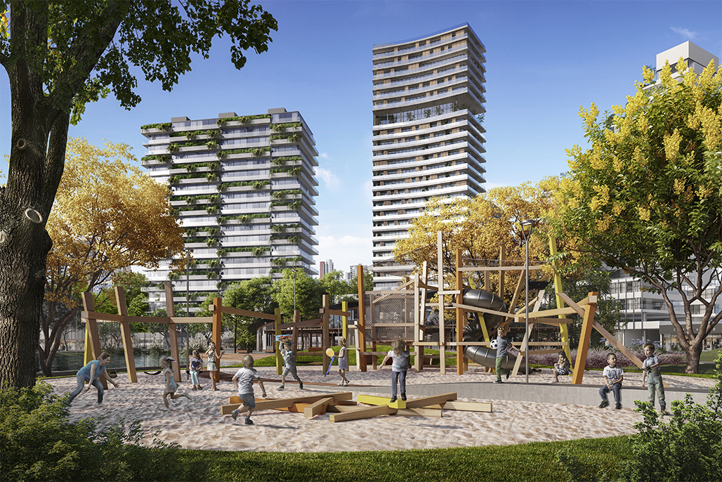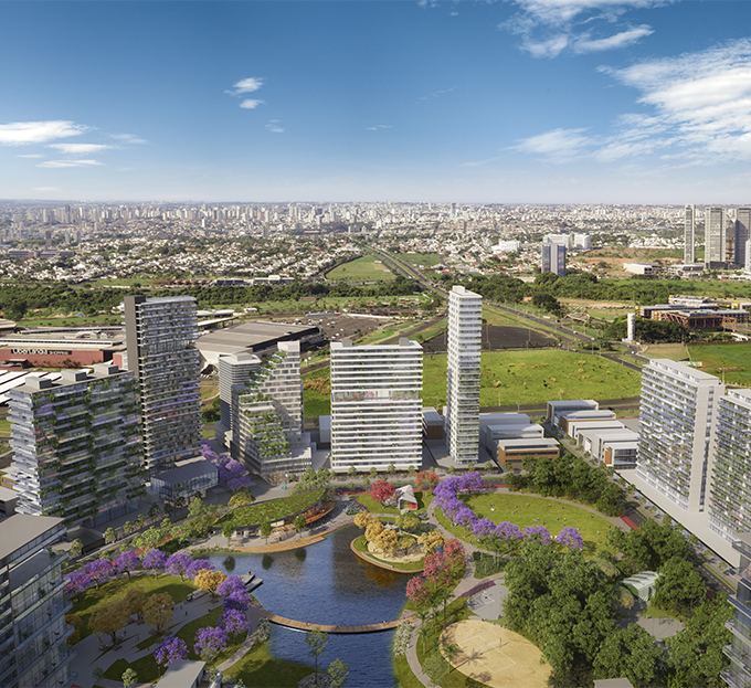 O início do projeto de masterplan do Parque UNA Uberlândia começou com as quadras que dão o acesso inicial ao bairro. Estas quadras exercem a função de marcar visualmente esse acesso e proporcionar uma experiência convidativa, humana e acolhedora para os usuários que adentram o bairro.