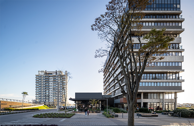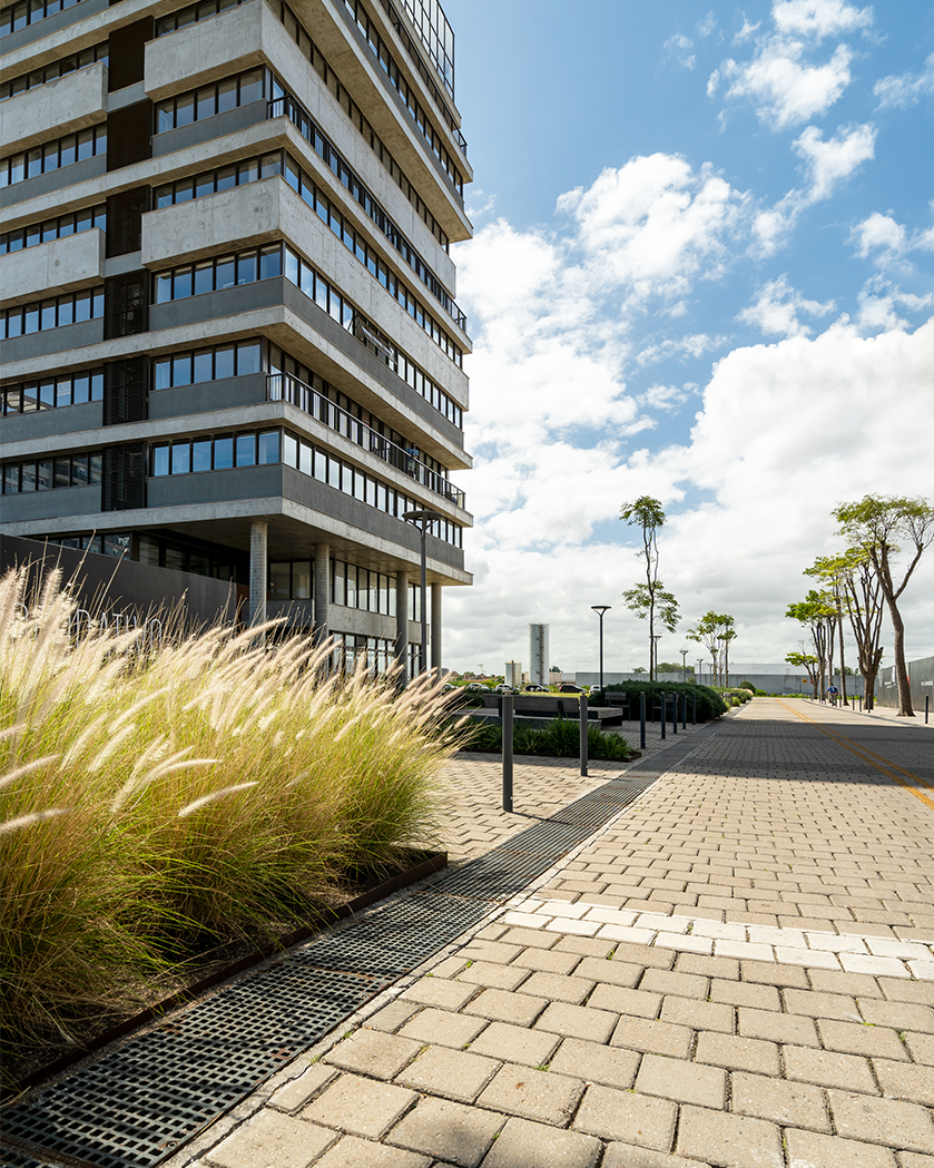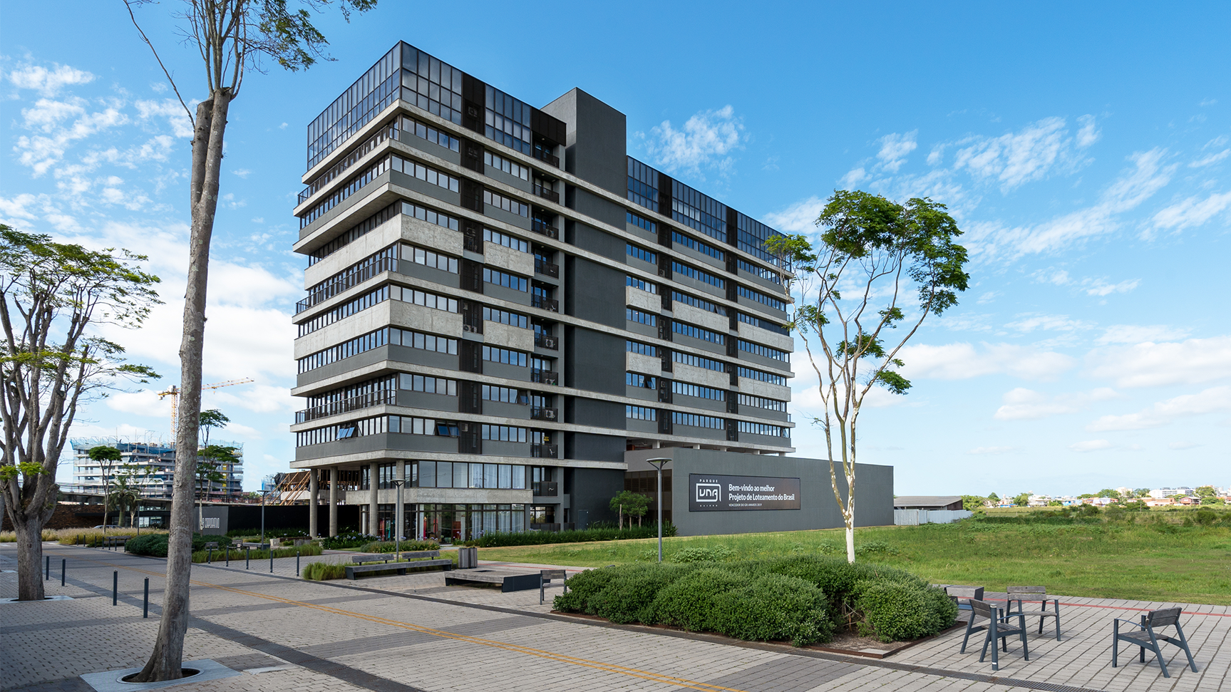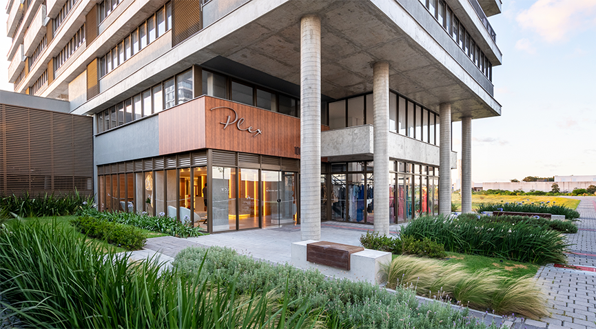 Primeira edificação desenvolvida a partir do Master Plan do Hub Corporativo no Parque Una. O Plex foi concebido com a intenção de compor, junto com o Flow Work, um marco de entrada dessa nova região da cidade de Pelotas. O Edifício é composto de salas comerciais. Sua volumetria foi criada através de um jogo de planos horizontais ritmados assim, concebendo sacadas e espaços para apreciar sua vista perene ao parque. Na sua materialidade, predomia o concreto e o bronze.
