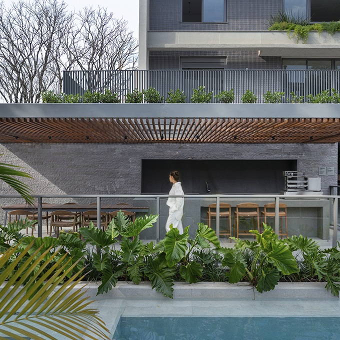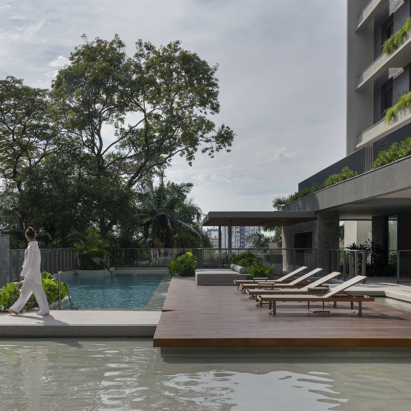 Situado no bairro Boa Vista, o projeto busca estabelecer relação com o verde já existente no local. Espaços de conforto são criados a partir da prática de contemplação, enaltecendo a conexão visual entre interior e exterior e proporcionando ao morador a possibilidade de um olhar extraordinário. Planos horizontais e verticais configuram espaços que, combinados à utilização de materiais naturais e à diluição dos limites visuais, intencionam a construção de atmosferas. No térreo, os planos são posicionados a fim de criar áreas comuns com circulação fluida, integrando harmoniosamente espaços internos e externos através do uso de extensos panos de vidro. A torre tem início no segundo pavimento, apresentando pavimento tipo com quatro apartamentos de aproximadamente 150m² cada. No topo do edifício, encontram-se apartamentos duplex com espaços de lazer privativos.